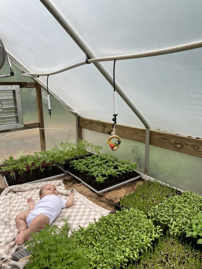 Working from home had its perks and its painful moments. If she cried you could hear it everywhere on the property (or at least I could, as her mom. I heard lots of phantom cries too). I would run in to make sure Josh didn’t need support. You can imagine how unimportant a crop of lettuce feels to a mama farmer in a moment like this…