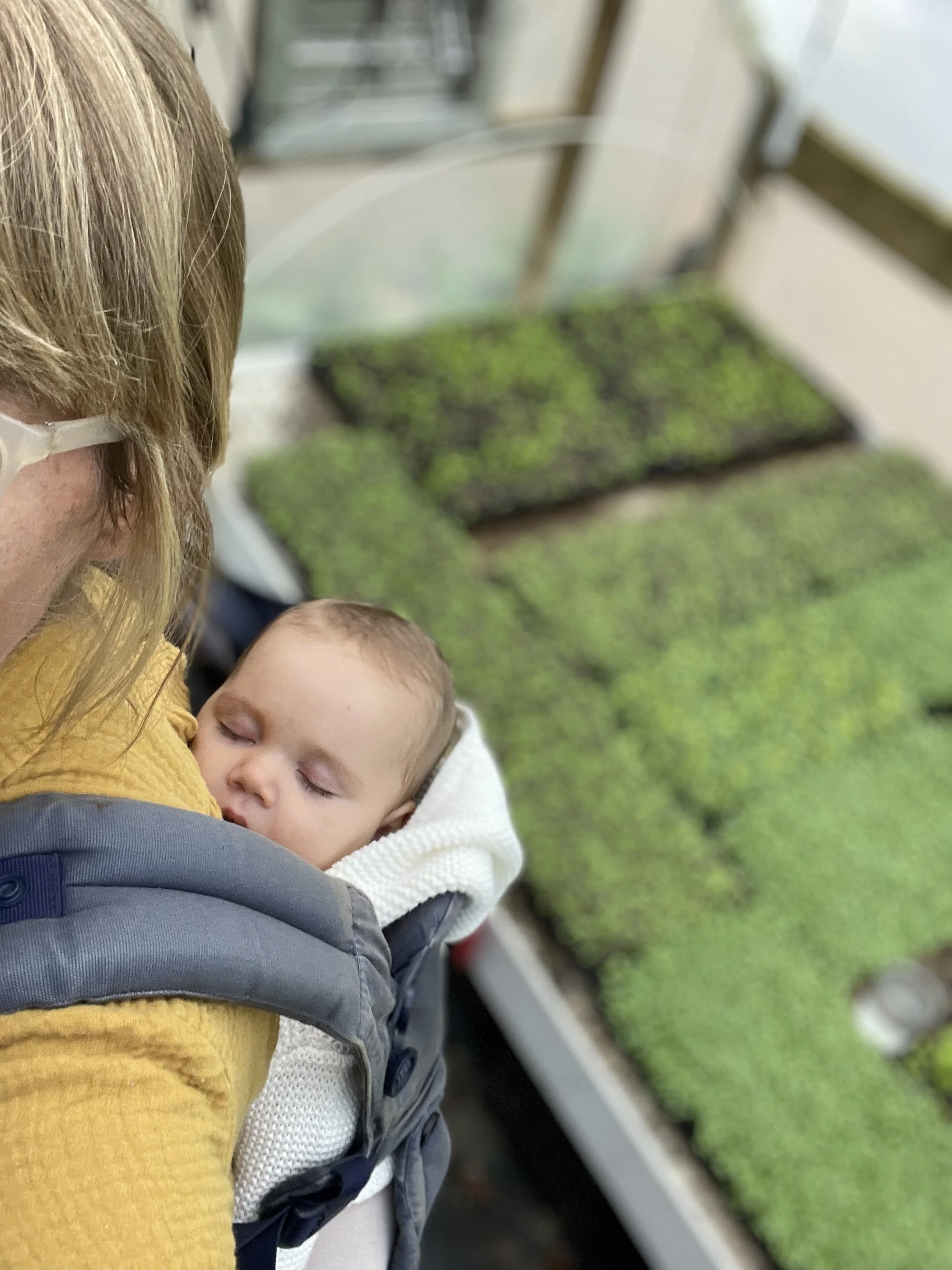 Growing Microgreens is easy on the body too- allowing you to do most tasks standing up around a table rather than crouching over a bed (I do most of my seeding while baby-wearing which is not possible with most other farm tasks!)